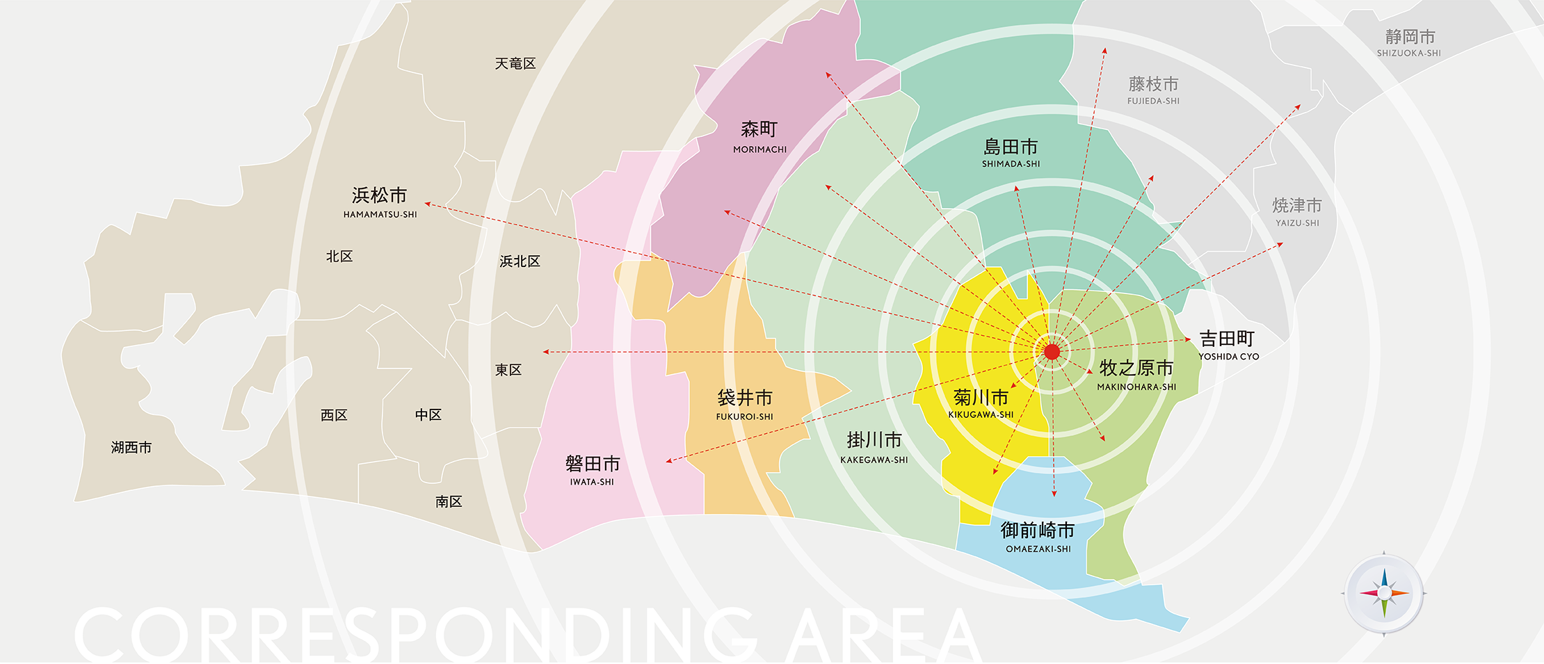 菊川市・掛川市・島田市・牧之原市・御前崎市・浜松市 などを中心に対応しております。